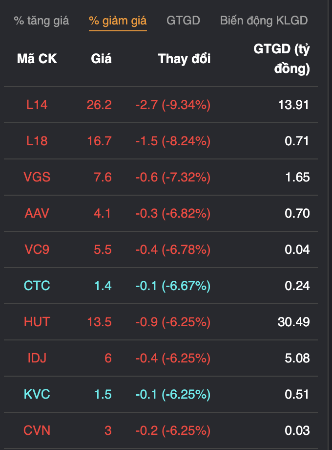 HNX-Index giảm 1,38 điểm tương ứng 0,7% còn 197,18 điểm và UPCoM-Index giảm 0,31 điểm tương ứng 0,43% còn 71,94 điểm.