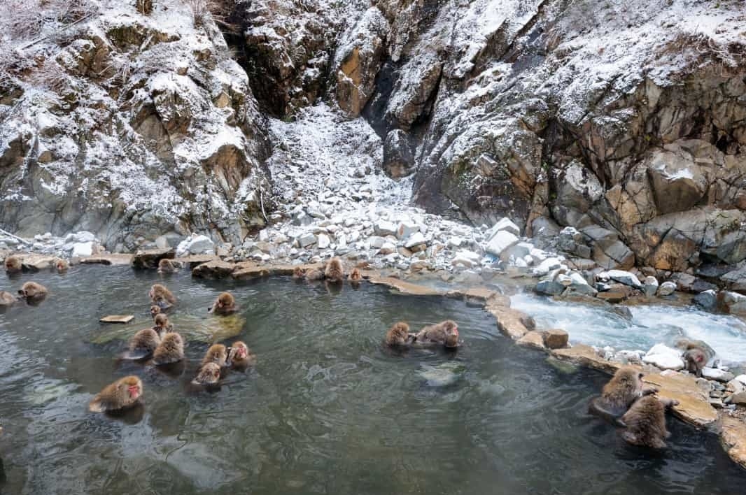 | Jigokudani (Nhật Bản) - Tại Công viên Khỉ Jigokudani ở thành phố Yamanouchi, người ta có thể bắt gặp những con khỉ tuyết đang tắm trong suối nước nóng. Công viên thu hút không chỉ khách du lịch mà còn thu hút các nhà khoa học, họ đến đó để nghiên cứu hành vi của khỉ tuyết trong môi trường sống tự nhiên của chúng. |