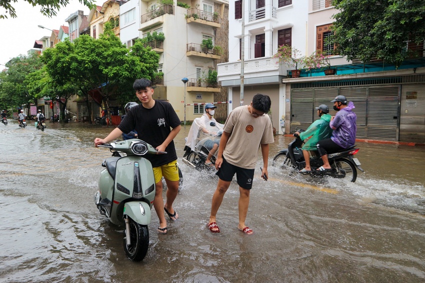 | Do ảnh hưởng của mưa lớn khiến nhiều tuyến đường tại Hà Nội trong tình trạng ngập sâu |