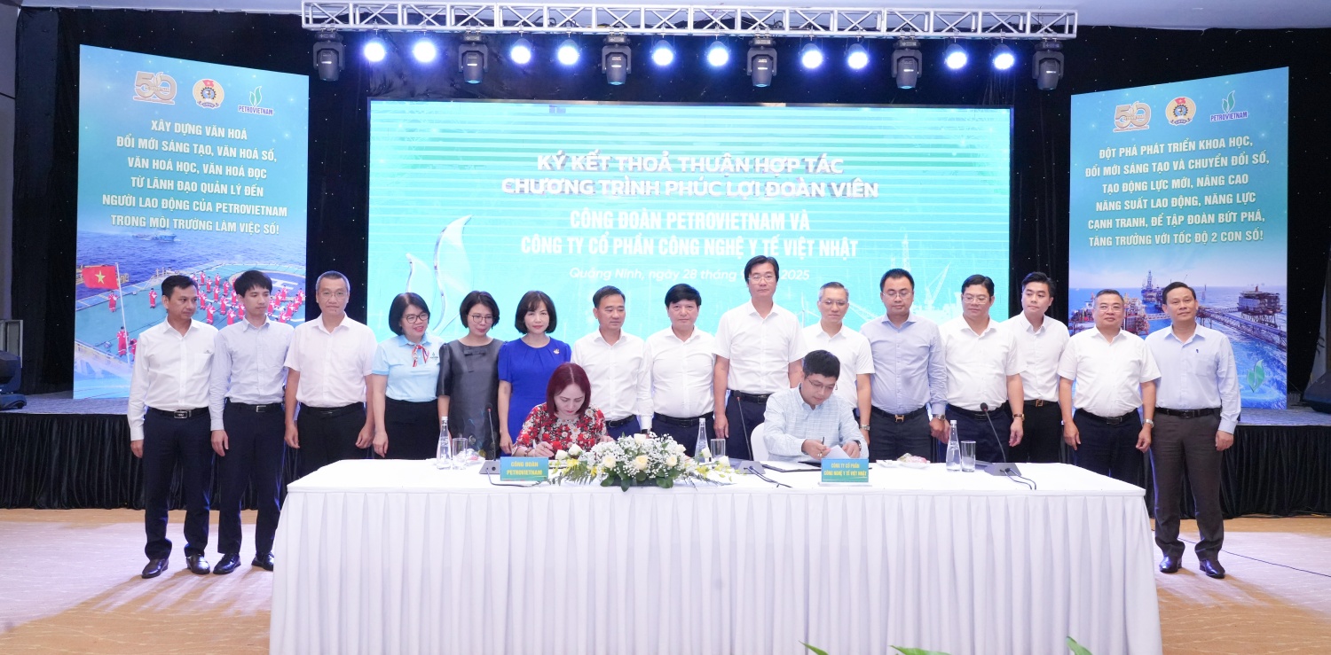 Nhân dịp này, Công đoàn Petrovietnam và Công ty CP Công nghệ Y tế Việt Nhật đã ký kết thỏa thuận hợp tác chương trình phúc lợi đoàn viên nhằm nâng cao phúc lợi y tế, quan tâm chăm sóc sức khỏe cho người lao động với mong muốn phát hiện sớm, phòng chống các căn bệnh ung thư bằng công nghệ tầm soát ung thư của Nhật Bản.