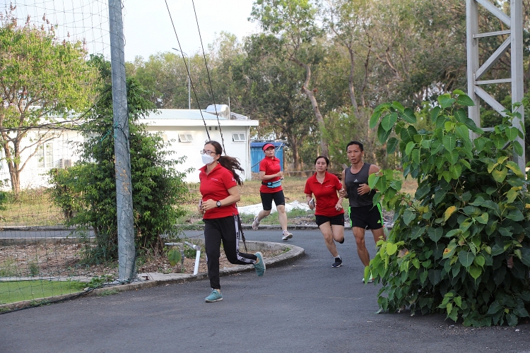 Công đoàn viên PVU tham gia với nhiệt huyết, tinh thần rèn luyện sức khỏe, sau giờ làm việc mọi người đã cùng nhau tập trung chạy xung quanh sân trường.