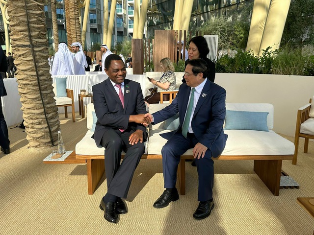 Tại cuộc gặp với Tổng thống Zambia Hakainde Hichilema, Thủ tướng Chính phủ Phạm Minh Chính khẳng định Việt Nam rất coi trọng quan hệ hữu nghị với Zambia và mong muốn hai nước tăng cường hợp tác nhiều mặt. Tổng thống Zambia đánh giá cao thành tựu phát triển kinh tế - xã hội của Việt Nam thời gian qua, nhất trí hai nước cần tăng cường hợp tác, trong đó có hợp tác 3 bên về nông nghiệp và mong muốn Việt Nam chia sẻ kinh nghiệm về phát triển, cải cách thủ tục, cung cấp dịch vụ công. Tổng thống Zambia cảm ơn lời mời và bày tỏ mong muốn sớm thăm Việt Nam, đồng thời trân trọng mời Thủ tướng Chính phủ thăm chính thức Zambia. Hai nhà lãnh đạo nhất trí tăng cường phối hợp chặt chẽ tại các diễn đàn đa phương, thúc đẩy hợp tác Nam - Nam, thúc đẩy công bằng, công lý, bảo đảm lợi ích của các nước đang phát triển.