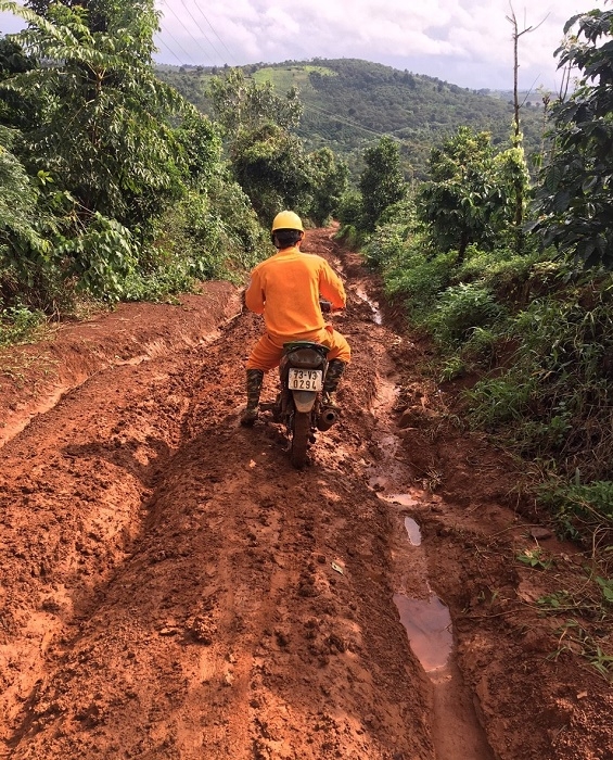 Tính đến nay, tỉnh Đăk Nông đã thành lập được gần 15 năm, kinh tế - xã hội đã phát triển hơn trước rất nhiều, được Đảng và nhà nước quan tâm xây dựng nhiều con đường nhựa và bê tông hóa nông thôn. Tuy vậy, vẫn còn đó rất nhiều con đường đất đỏ bazan dẫn vào các bản làng, thường bắt đầu từ lối đi rừng phát rẫy, lấy củi… của những người dân đầu tiên khai hoang. Những con đường này nằm ở các xã, thôn buôn vùng sâu, vùng xa, vùng biên giới của tỉnh. Không chỉ những người dân đi lại gặp nhiều khó khăn, nguy hiểm, mà đối với anh em công nhân ngành điện làm nhiệm vụ cũng dở khóc, dở cười với những “cung đường hạnh phúc”. Đặc thù địa chất Đắk Nông chủ yếu là đất đỏ bazan, những con đường đất mùa khô thì bụi mù mịt, mùa mưa thì bùn lầy dính như keo. Chưa kể những đoạn đường ở sườn núi bị sạt lở hay cây ngã chặn ngang đường mỗi khi đến mùa mưa bão với bao nhiêu mối nguy hiểm cận kề. Có những đoạn đường chưa đến một ki-lô-mét nhưng anh em ngành điện phải mất hơn một giờ mới bươn qua được. Xuống gặp anh Võ Phúc - Tổ QLVH đường dây và TBA Điện lực Tuy Đức, anh Phúc bộc bạch:“Các chú quản lý trên Công ty không biết anh em đường dây dưới này khổ thế nào! Có những lần sự cố, anh em đi kiểm tra gặp những đoạn đường bùn lầy ngập đến đầu gối, xe máy không đi qua được phải gửi nhà dân đi bộ mất cả tiếng đồng hồ mới kiểm tra đến cuối tuyến được. Chưa kể, những lần cây rừng lớn ngã vào đường dây phải cô lập xử lý, anh em phải vác bao nhiêu đồ đạc trên vai bươn qua bùn lầy như bộ đội hành quân”, anh Phúc cười trên khuôn mặt rám nắng hiền hậu.