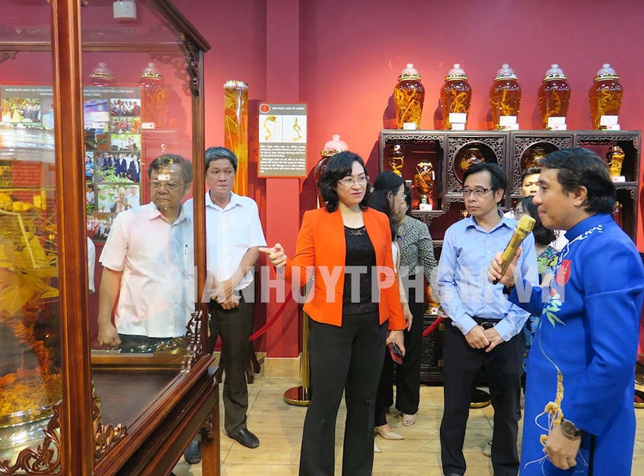 Đồng chí Phan Thị Thắng cùng đoàn tham quan tìm hiểu Bảo tàng Sâm Ngọc Linh