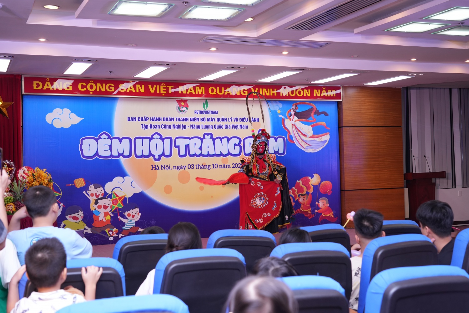 Ngày 3/10, Đoàn Thanh niên BMQL&ĐH Petrovietnam đã tổ chức chương trình “Đêm hội Trăng Rằm” dành cho con em CBNV và người lao động. Hoạt động được tổ chức tại trụ sở Petrovietnam với nhiều tiết mục phong phú, mang đến cho các em nhỏ một mùa Trung thu đầm ấm và nhiều niềm vui.