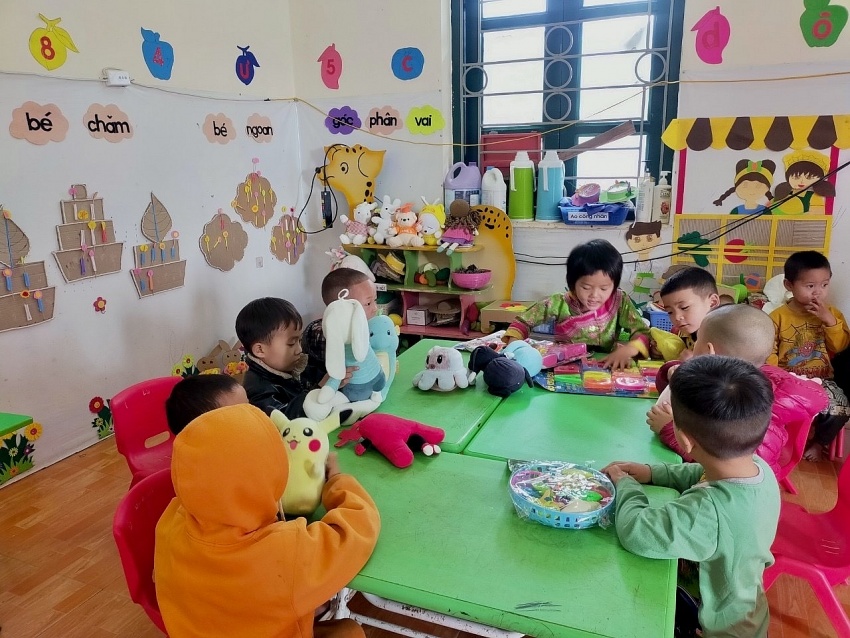 | Đoàn Thanh niên PTSC Marine mang “Gấu bông và Áo ấm cho em” đến điểm trường Mầm non Mường Toong, xã Mường Toong, huyện Mường Nhé, tỉnh Điện Biên. |