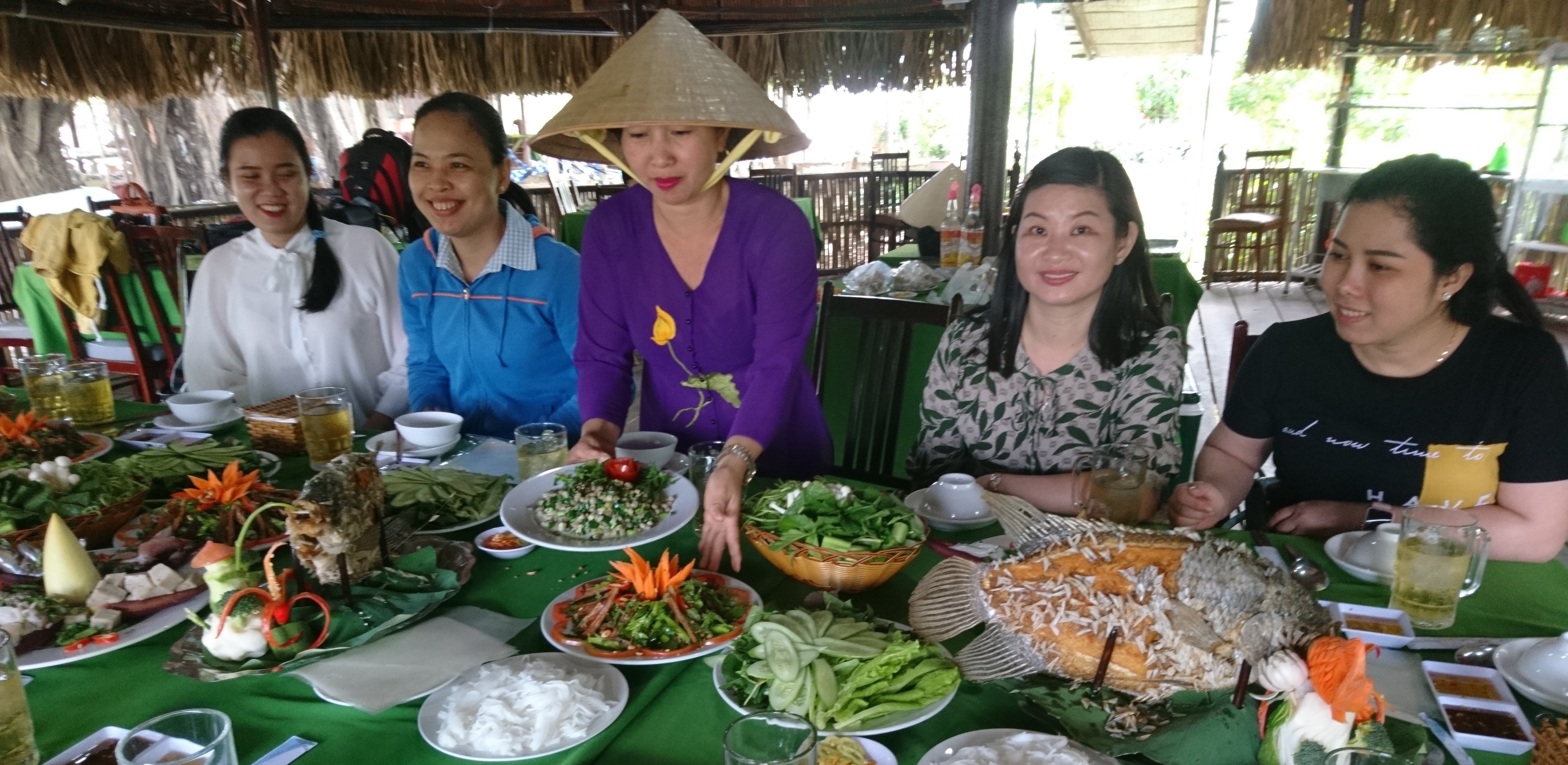 Bây giờ, du khách có thể tham quan thưởng thức vườn cây ăn trái, có thể ăn “bụng” chôm chôm (ăn chôm chôm đến khi đầy bụng), làng nghề làm bánh kẹo, hay tát mương bắt cá, làm vườn, câu cá, chế biến món ăn, trải nghiệm làm bánh dân gian, đốt đuốc lá dừa đi xem hát bội như thời xa xưa- của Đoàn nghệ thuật tuồng cổ Đồng Thinh,, đã trải qua hơn 100 thăng trầm, từng được mời đi biểu diễn tại Mỹ và gây tiếng vang lớn cho hát bội Việt Nam tại Lễ hội Smithsonian năm 2007, với chủ đề “Mekong-Dòng sông kết nối các nền văn hóa” do Viện Smithsonian tổ chức tại Washington, đờn ca tài tử, thưởng thức những đặc sản miệt vườn sông nước Cửu Long như cá lóc nướng trui, cá tai tượng chiên xù cuộn bánh tráng cùng rau thơm hương đồng nội, canh chua cá, cá rô kho tộ, tôm càng kho tàu…