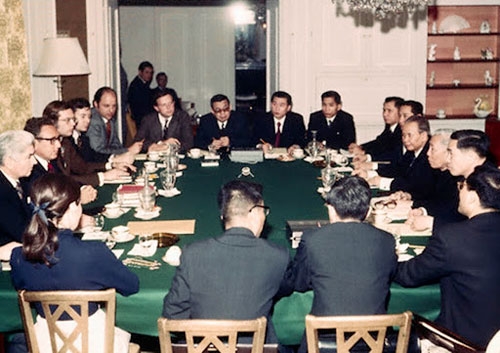 Tháng 1/1969, phiên họp thứ nhất với sự tham gia của 4 bên được tổ chức, khi nước Mỹ bấy giờ được thay tổng thống bằng gương mặt mới Richard Nixon. Đầu năm 1970, quá trình thương lượng nhiều lần diễn ra trong bí mật, giữa hai nhân vật: Henry Kissinger (cố vấn An ninh quốc gia Hoa Kỳ) và cố vấn Chính phủ VNDCCH Lê Đức Thọ. Ngày 21/2/1970, tại căn nhà số 11 đường Darthé thuộc Choisy-Le-Roi (Paris), hai nhà đàm phán Kissinger - Lê Đức Thọ (mà sau này đều được trao Nobel hòa bình 1973 và ông Thọ không nhận) đã lần đầu gặp nhau.