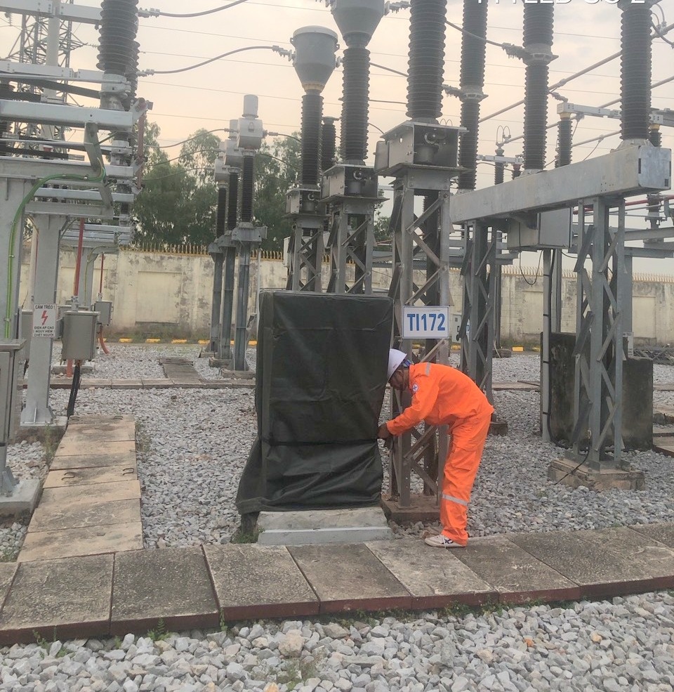 | Công nhân TBA 110kV Vân Đồn 2 (PC Quảng Ninh) che chắn thiết bị phòng chống cơn bão số 1 |