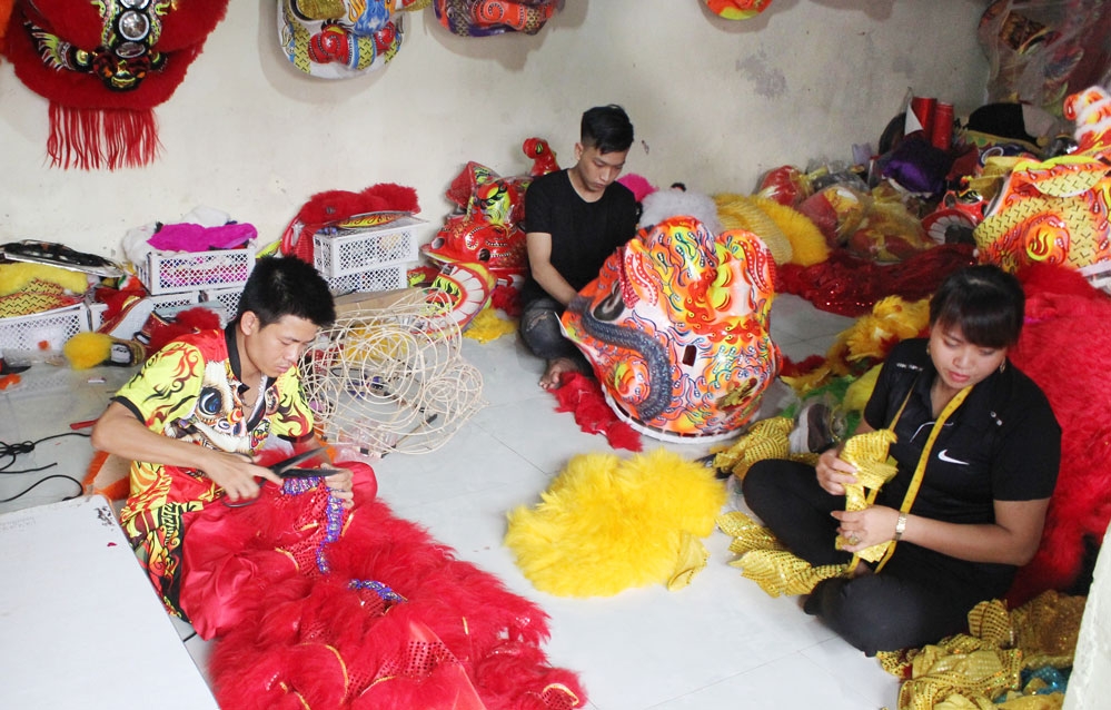 | Nghề làm đầu lân mang lại thu nhập ổn định cho gia đình anh Bùi Viết Tưởng (xã Quảng Bị, huyện Chương Mỹ). |