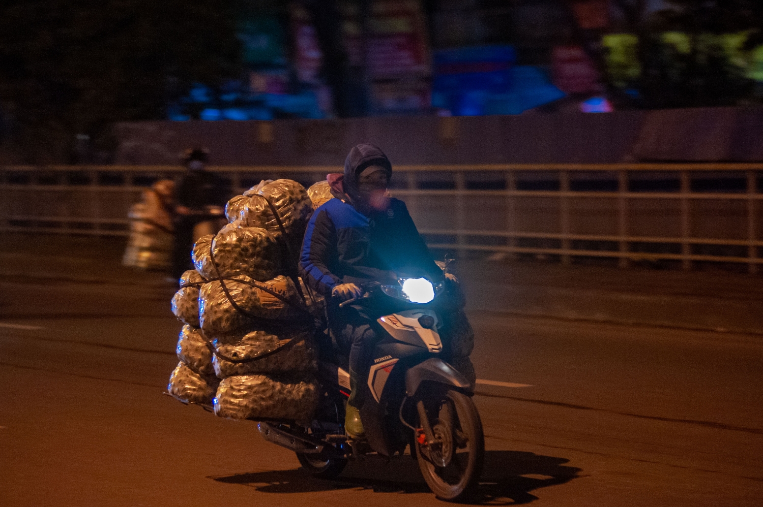 2 giờ sáng trên đường Trần Nhật Duật, quận Hoàn Kiếm - ông Vũ Văn B (70 tuổi) đang tận dụng những mảnh gỗ vụn để đốt lủa sưởi ấm. Ông B cho biết mình đã làm nghề sửa xe vào ban đêm được hơn 10 năm nay, khách hàng chủ yếu là những người chở hàng đến Chợ Long Biên, mặc dù mùa đông trời giá rét nhưng vì đã quen nghề nên vẫn phải tiếp tục bám trụ trên ngoài đường vào buổi đêm để lấy kế sinh nhai.