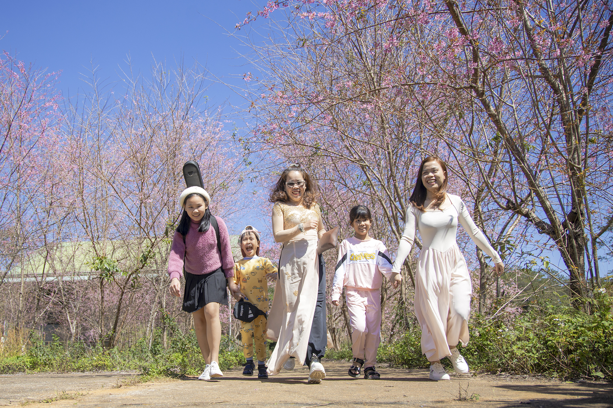 Những nụ cười rạng rỡ dưới tán cây mai anh đào.
