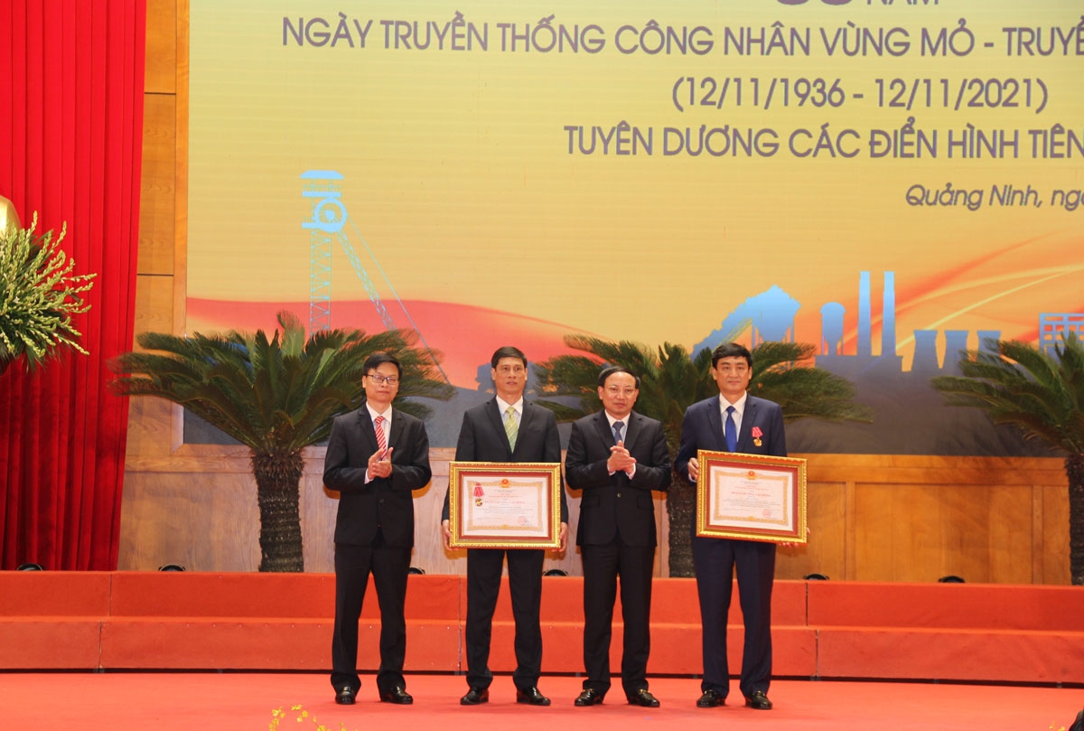 Tại buổi lễ, TKV đón nhận bằng công nhận Di tích cấp tỉnh “Trụ sở Công ty Pháp mỏ than Bắc Kỳ” của UBND tỉnh Quảng Ninh. Nhiều tập thể, cán bộ, công nhân TKV đã được Chủ tịch Nước tặng thưởng Huân chương Lao động hạng Ba; tặng cờ, bằng khen của Thủ tướng Chính phủ, của Ủy ban Quản lý vốn Nhà nước tại doanh nghiệp. UBND tỉnh Quảng Ninh tặng bằng khen cho các tập thể có thành tích phòng chống dịch và sản xuất kinh doanh. TKV khen thưởng mục tiêu thi đua, năng suất kỷ lục, chăm lo đời sống người lao động cho các đơn vị và khen thưởng các cơ quan y tế của tỉnh trong công tác phối hợp phòng, chống dịch.