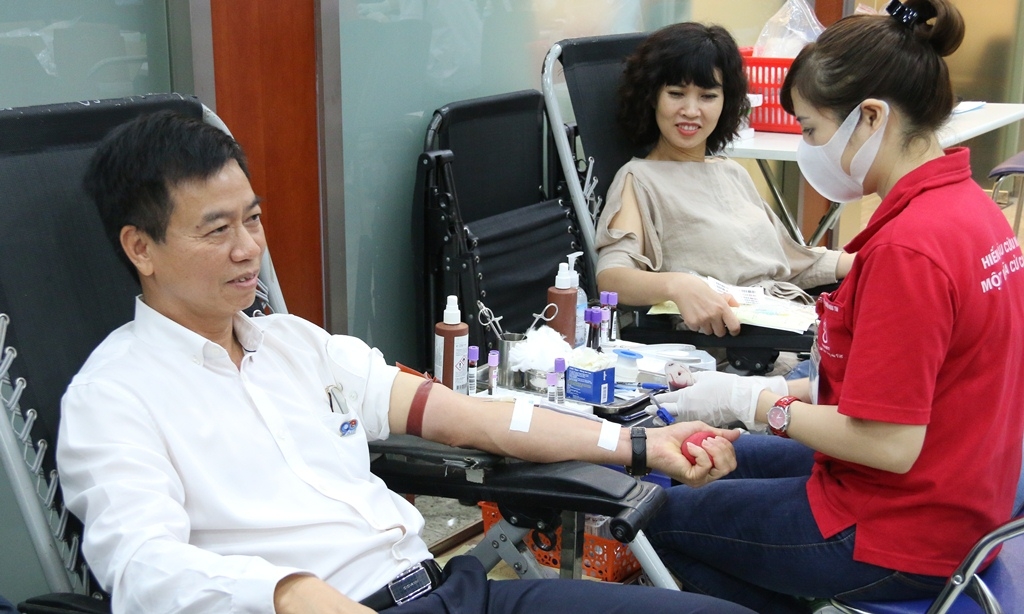 | Chủ tịch Công đoàn PVcomBank Đỗ Đức Viên tham gia hiến máu |