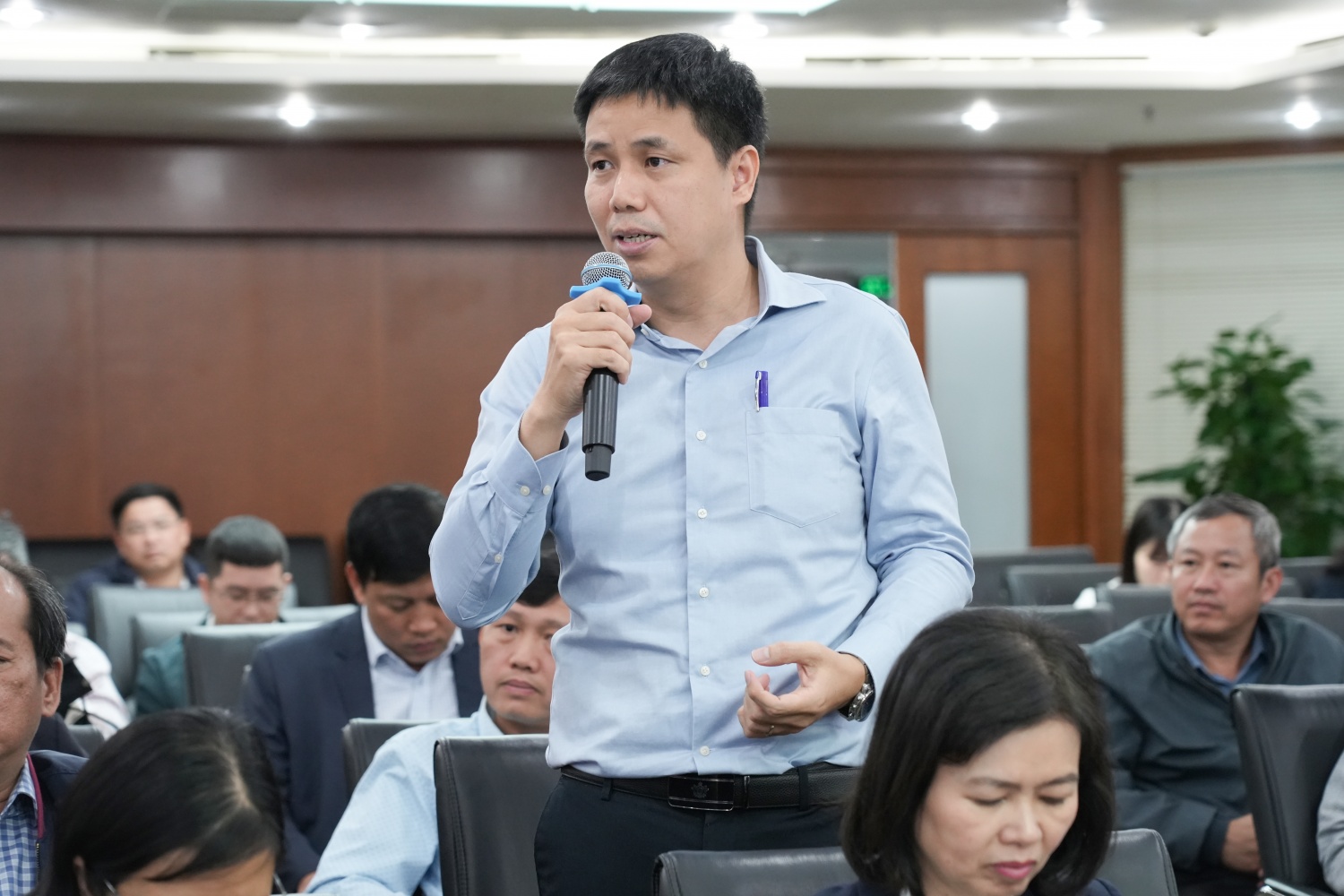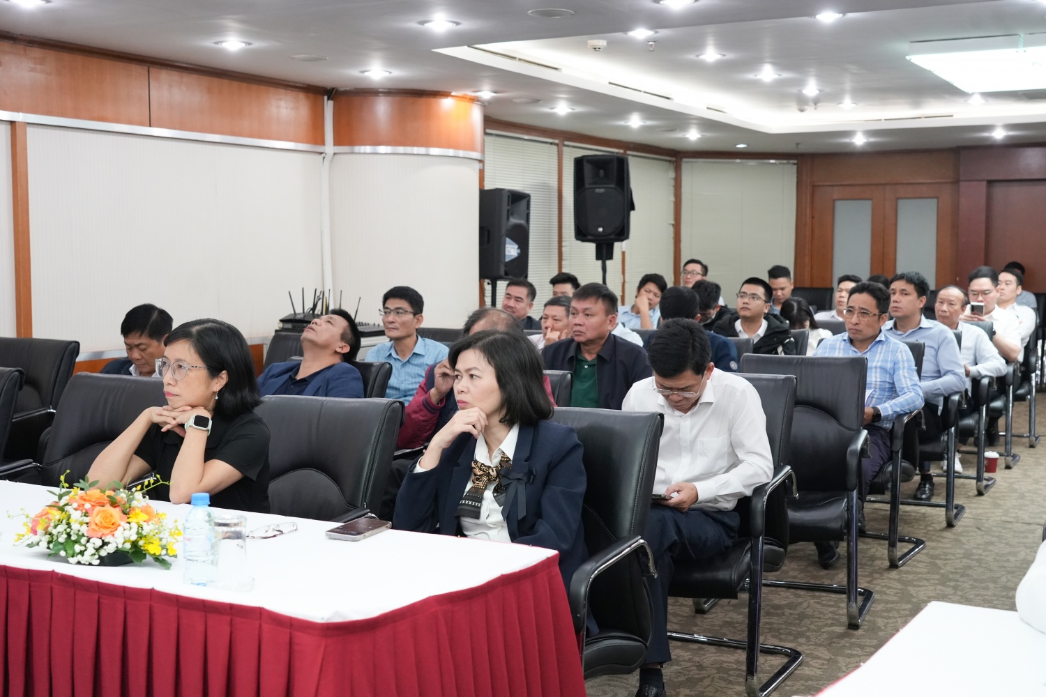| Các đại biểu lắng nghe phần thuyết trình về các sản phẩm sáng tạo |