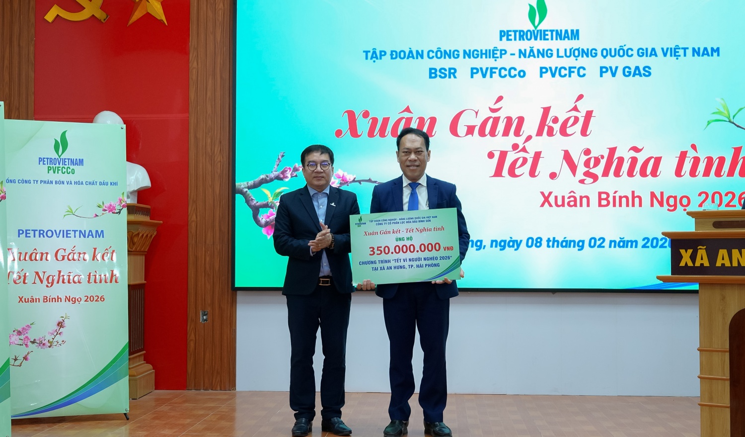Ngày 8/2, tại xã An Hưng (thành phố Hải Phòng), Tập đoàn Công nghiệp - Năng lượng Quốc gia Việt Nam (Petrovietnam) đã tổ chức chương trình an sinh xã hội “Petrovietnam: Xuân Gắn kết - Tết Nghĩa tình”, trao quà và hỗ trợ kinh phí chăm lo Tết cho các hộ nghèo, hộ cận nghèo, gia đình chính sách và học sinh có hoàn cảnh khó khăn trên địa bàn.