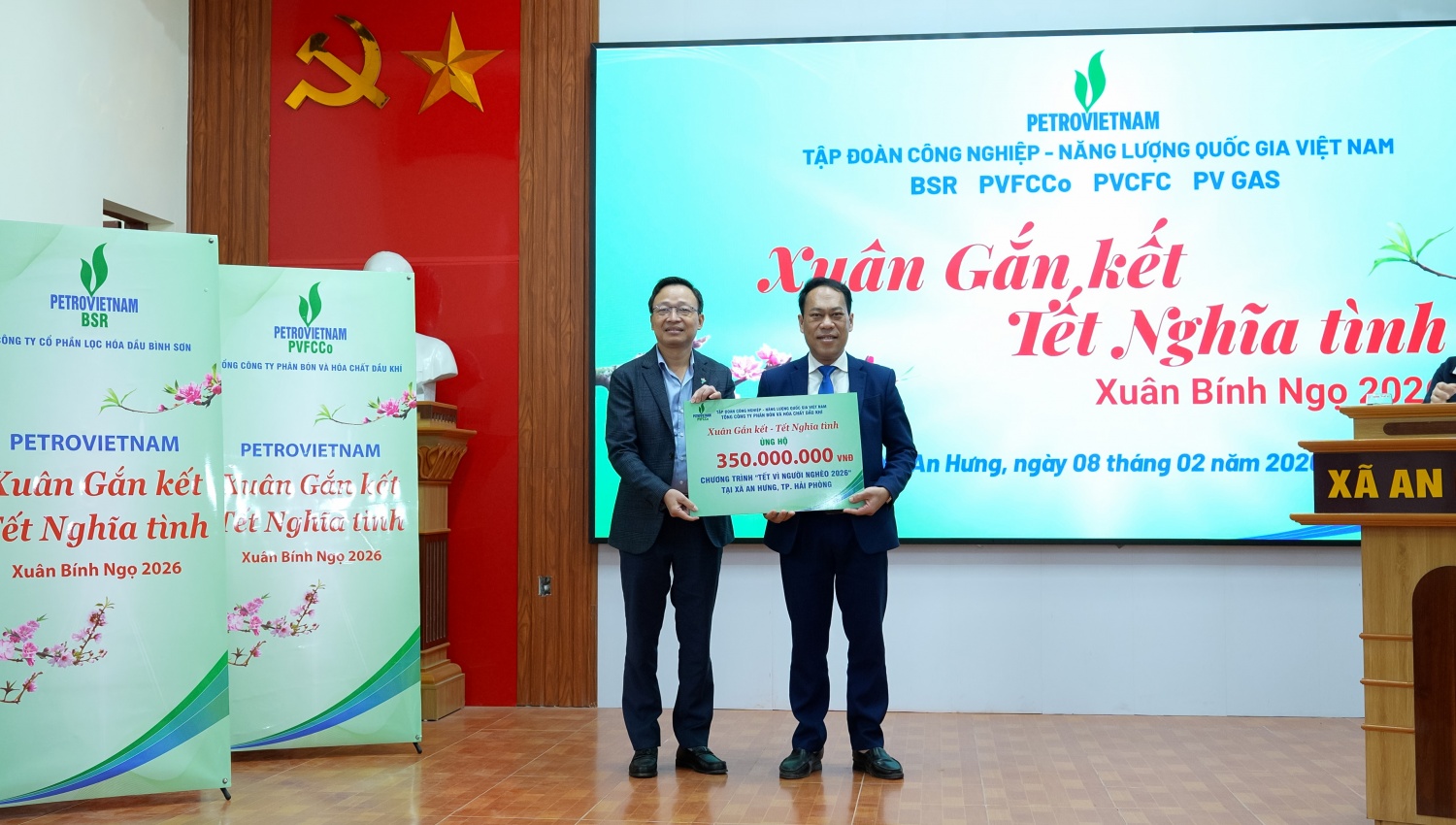 Riêng với xã An Hưng, trong khuôn khổ chương trình an sinh xã hội “Petrovietnam: Xuân Gắn kết - Tết Nghĩa tình”, Petrovietnam và các đơn vị thành viên đã ủng hộ tổng kinh phí 1,4 tỷ đồng. Trong đó, chương trình “Tết vì người nghèo” có sự đồng hành của: Công ty Cổ phần Lọc hóa dầu Bình Sơn (BSR) ủng hộ 350 triệu đồng; Tổng công ty Phân bón và Hóa chất Dầu khí (PVFCCo - Phú Mỹ) ủng hộ 350 triệu đồng; Tổng công ty Phân bón Dầu khí Cà Mau (PVCFC) ủng hộ 200 triệu đồng. Bên cạnh đó, Tổng công ty Khí Việt Nam (PV GAS) ủng hộ 500 triệu đồng cho "Quỹ học sinh nghèo vượt khó" của địa phương.