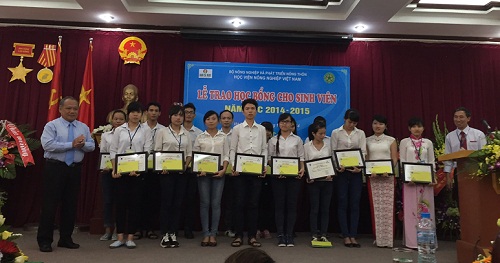 Chủ tịch HĐTV PVCFC Nguyễn Đức Thành trao học bổng cho các sinh viên Học viện Nông nghiệp Việt Nam