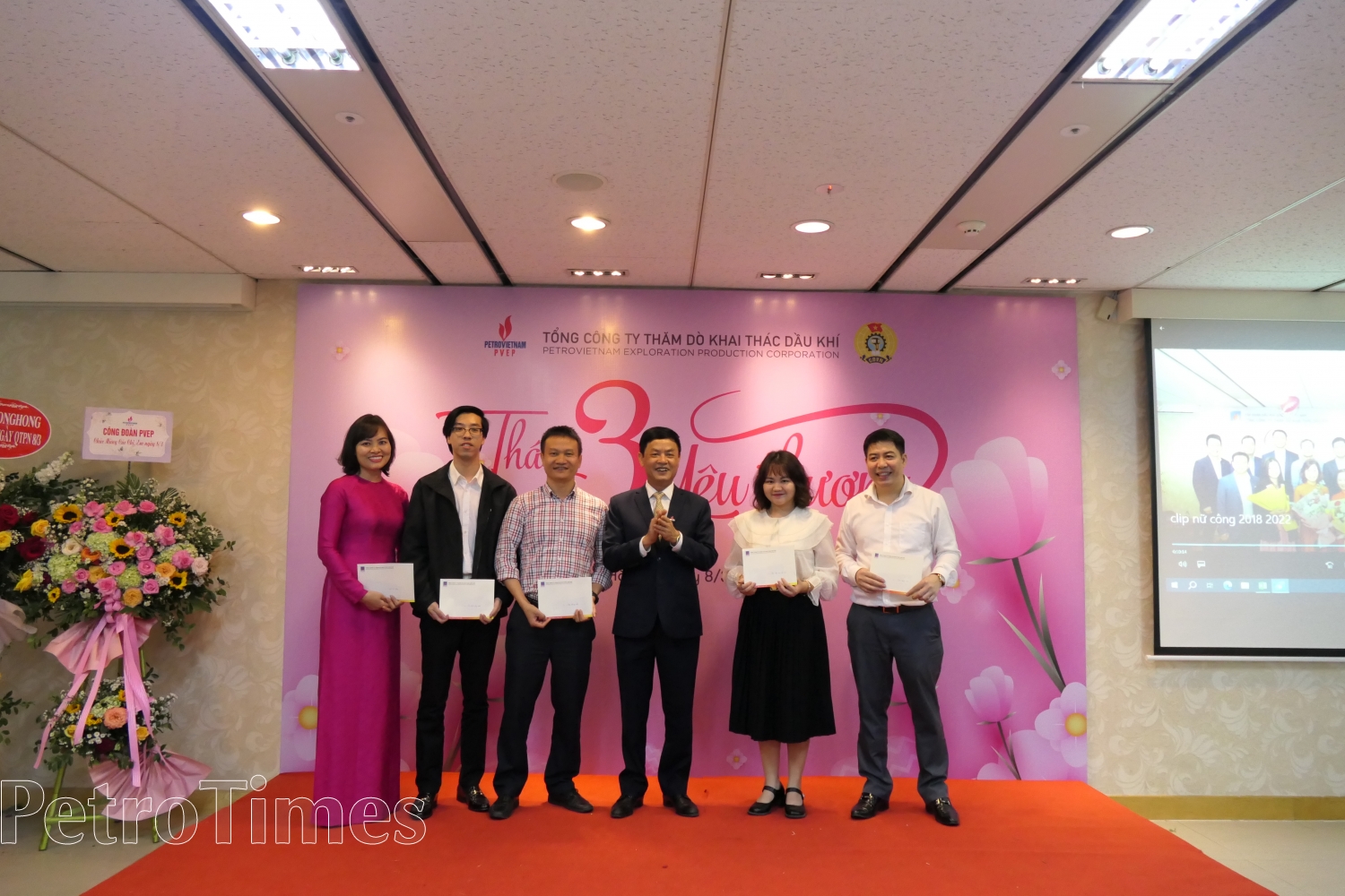 | Ban lãnh đạo Tổng công ty tặng hoa cho đại diện Ban Nữ công Công đoàn PVEP |
