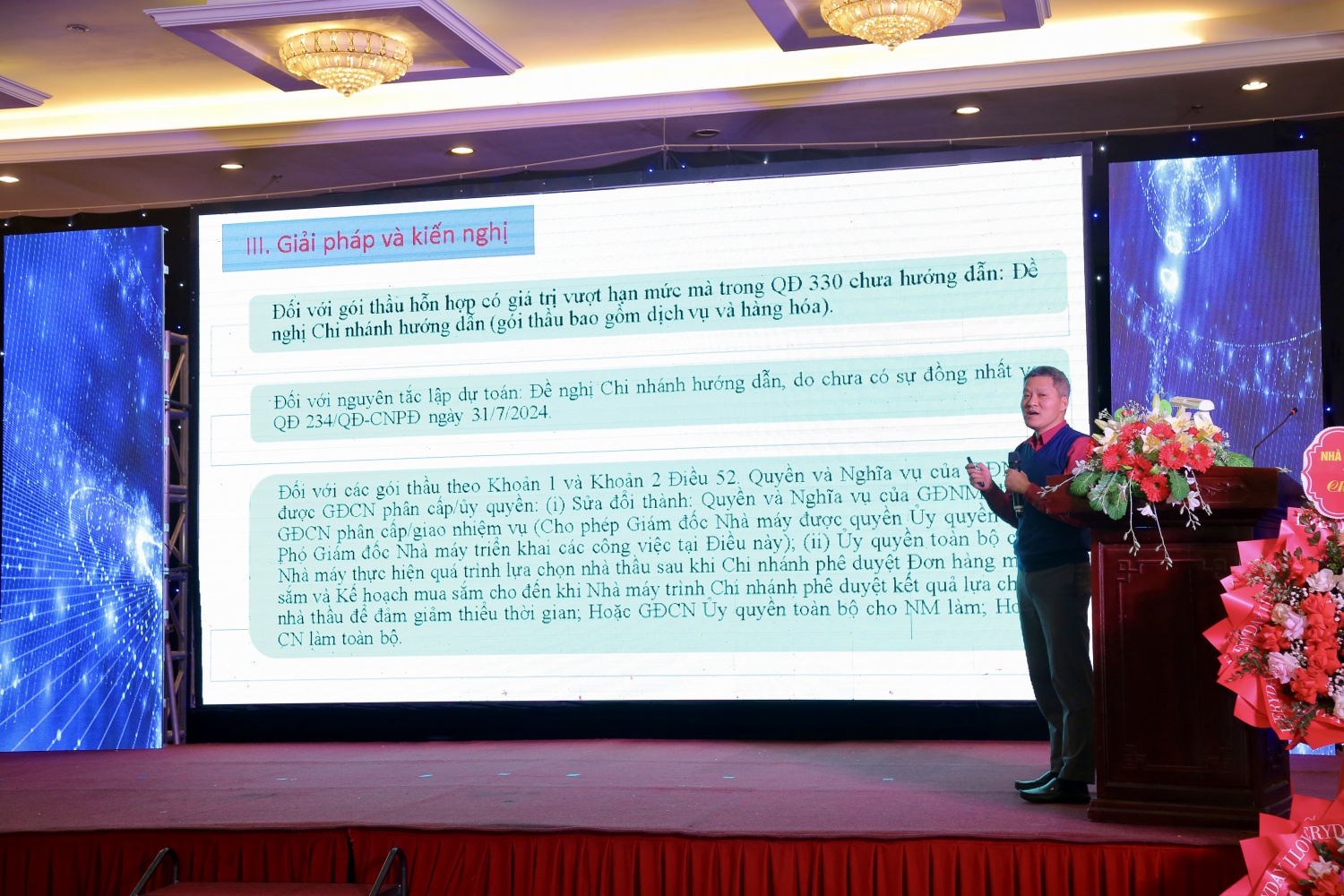 | Ông Nguyễn Tài Mạnh, Phó Trưởng phòng Kế hoạch Kinh doanh trình bày báo cáo công tác thương mại, đấu thầu của PVPGB. |