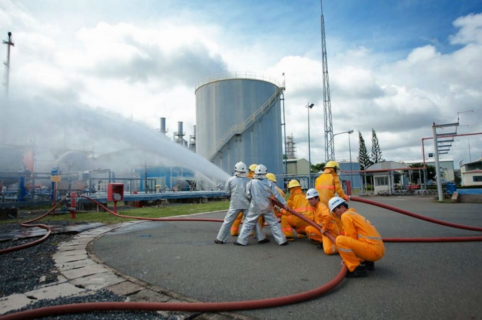 | Người lao động PV GAS diễn tập phương án chữa cháy |