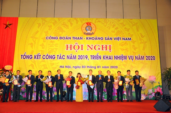 Nhân dịp này, Phó chủ tịch Tổng LĐLĐ VN Ngọ Duy Hiểu đã trao 5 Cờ thi đua xuất sắc và 3 Cờ thi đua chuyên đề của Tổng LĐLĐ VN cho các tổ chức công đoàn cơ sở, trao Bằng khen cho 6 lãnh đạo Công đoàn TKV có thành tích xuất sắc trong phong trào thi đua lao động giỏi và xây dựng tổ chức công đoàn vững mạnh. Công đoàn TKV cũng trao 12 Cờ thi đua cho các tập thể hoàn thành xuất sắc nhiệm vụ; 15 Cờ chuyên đề cho các đơn vị xuất sắc trong phong trào thi đua chăm lo đời sống NLĐ; 7 Cờ chuyên đề cho các đơn vị xuất sắc trong phong trào thi đua văn hóa thể thao; 6 Cờ chuyên đề cho các đơn vị xuất sắc trong phong trào thi đua xanh - sạch - đẹp, bảo đảm an toàn vệ sinh lao động; 4 Cờ chuyên đề cho các đơn vị xuất sắc trong phong trào thi đua giỏi việc nước, đảm việc nhà; trao biểu trưng vinh danh cho 10 doanh nghiệp đạt danh hiệu “Doanh nghiệp vì NLĐ” năm 2019.