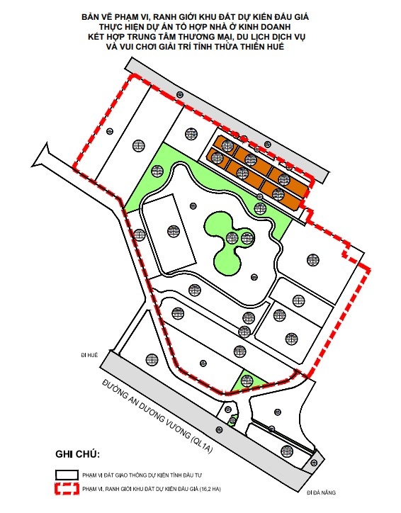 Sở Kế hoạch và Đầu tư vừa công bố thông tin kêu gọi đầu tư dự án Tổ hợp nhà ở kinh doanh kết hợp trung tâm thương mại du lịch dịch vụ và vui chơi giải trí phục vụ nhu cầu của người dân và khách du lịch đến Thừa Thiên Huế thuộc hai địa bàn TP.Huế và thị xã Hương Thủy, tỉnh Thừa Thiên Huế.