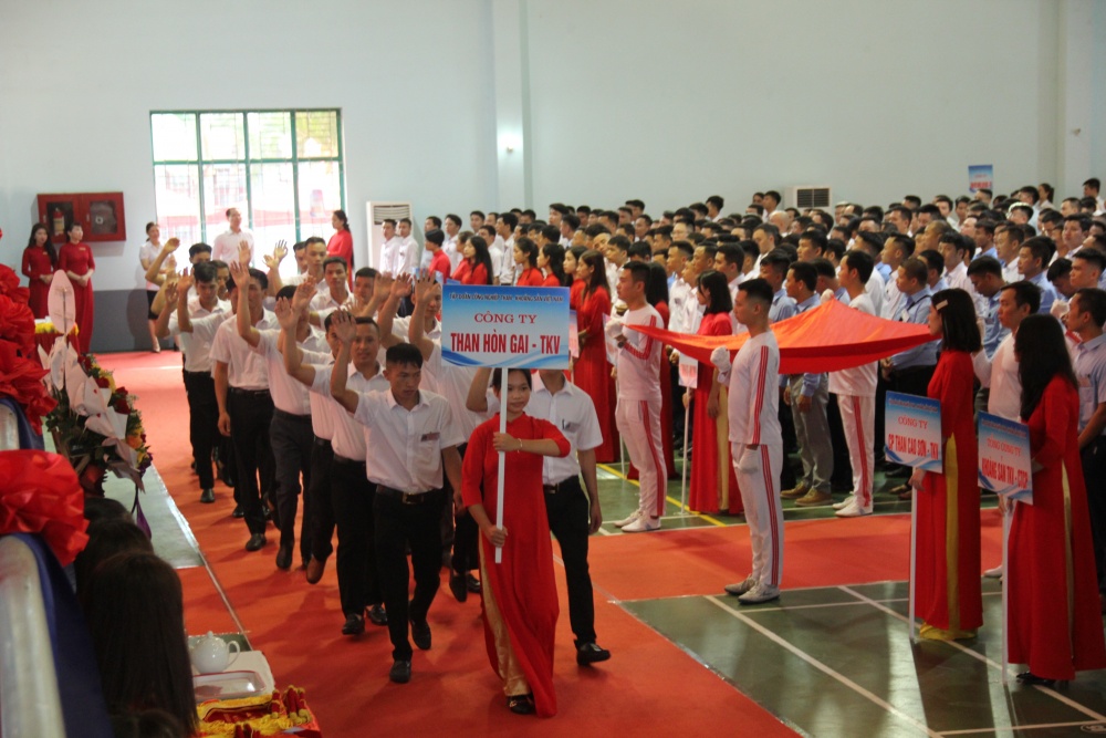 | Đoàn thí sinh của Công ty Xây lắp mỏ - TKV tại lễ khai mạc. |