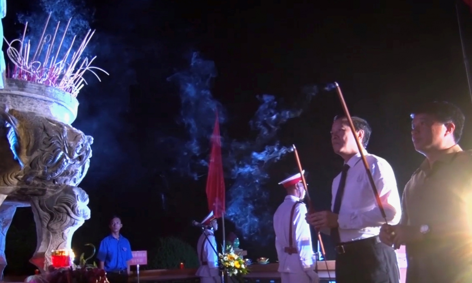 | Đồng chí Y Thanh Hà Niê Kđăm, Bí thư Đảng ủy Khối DNTW và đồng chí Phạm Ngọc Thưởng, Phó Bí thư Tỉnh ủy, Chủ tịch UBND tỉnh Lạng Sơn dâng hương tưởng niệm các Anh hùng liệt sỹ tại tượng đài Nghĩa trang Hoàng Đồng. |